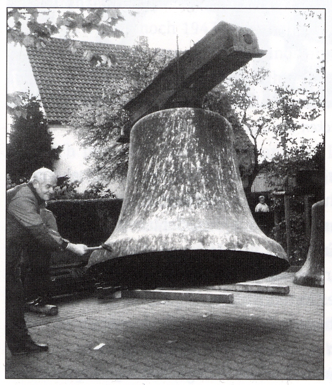 Natürlich herrschte nach Einführung der D-Mark im Juni 1948 eine ähnlich große Bargeldknappheit wie nach Einführung der Rentenmark im November 1923. Aber in Heven verstand man sich ja inzwischen auf Glockensammlungen, auch in einer Zeit, da jede Mark dreimal umgedreht wurde, bevor man sie ausgab. Am 17.12.1948 beschloss das Presbyterium: "Es soll ein Flugblatt gedruckt werden, durch das die Gemeinde zur Glockenspende aufgerufen wird. Eine Haussammlung soll durch das Presbyterium durchgeführt werden. Die Listen dieser Sammlung sollen zu einem Glockenstiftungsbuch zusammengefaßt werden. Der Vorsitzende soll versuchen, durch Darlehen von vermögenden Gemeindegliedern zur Beschaffung des notwendigen Geldes beizutragen. Die Darlehen sollen zum Sparkassen-Zinssatz verzinst werden." Diese Glockensammlung erbrachte bis August 1949 annähernd 4000 DM. Für den fehlenden Restbetrag wurde ein Darlehen bei der Inneren Mission in Münster aufgenommen in der Hoffnung, "daß unsere Gemeinde durch weitere Opferwilligkeit die restliche Finanzierung lösen wird."